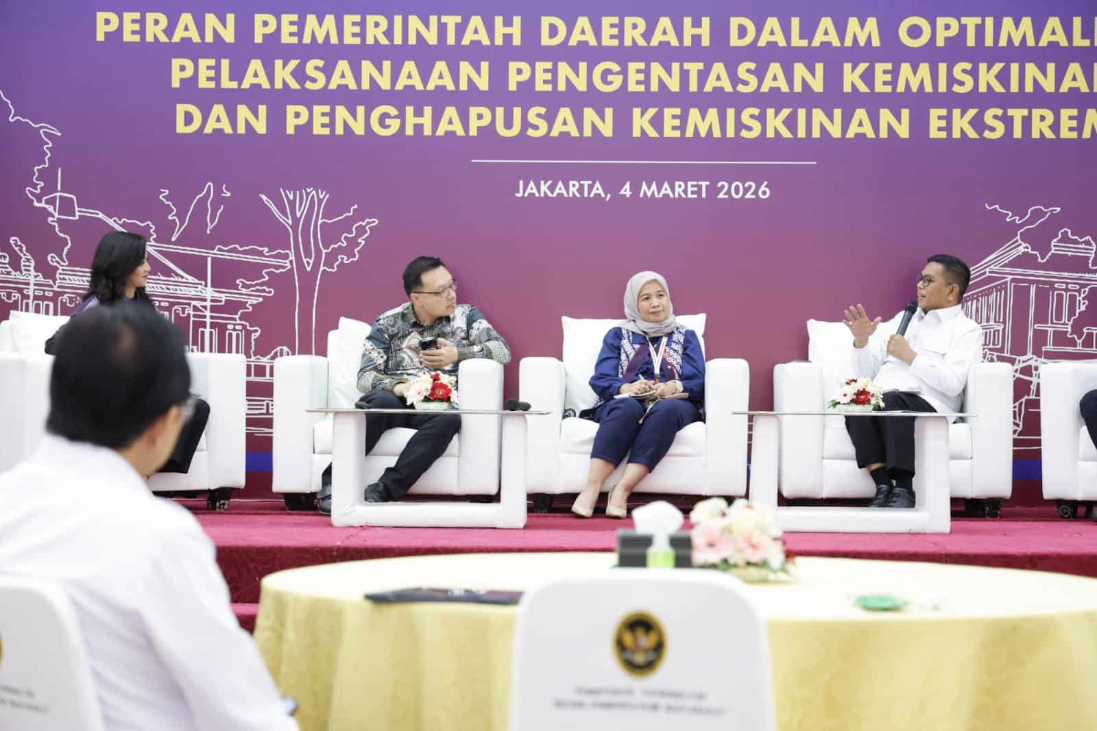 JAKARTA, PILARBANTEN.COM – Gubernur Banten Andra Soni menjadi narasumber praktik baik program pengentasan kemiskinan pada Rapat Koordinasi Peran Pemerintah Daerah Dalam Optimalisasi Pelaksanaan Pengentasan Kemiskinan dan Penghapusan Kemiskinan Ekstrem di Kemenko Pemberdayaan Masyarakat, Jakarta, Rabu (4/3/2026). Pengentasan kemiskinan tidak lagi hanya pada bantuan sosial, tapi juga fokus pada pemberdayaan masyarakat.