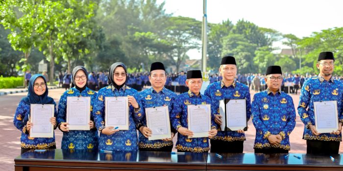 SERANG, PILARBANTEN.COM   — Pemerintah Provinsi Banten menggelar Upacara Peringatan Hari Ulang Tahun (HUT) KORPRI ke-54 Tahun 2025 yang dirangkaikan dengan pemberian sejumlah penghargaan bagi atlet PORNAS, Duta KORPRI, Kompetisi Inovasi Pelayanan Publik, serta Budaya Kerja Award bagi perangkat daerah. Upacara berlangsung di Lapangan Kantor Gubernur Banten, Kawasan KP3B, Kota Serang, dengan Gubernur Banten Andra Soni, S.M., A.AP bertindak sebagai pembina upacara. Senin, (1/12/25).
