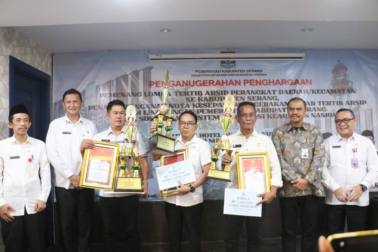SERANG, PILARBANTEN.COM – Dinas Perpustakaan dan Kearsipan Daerah (DPKD) Kabupaten Serang menggelar Penganugerahan Penghargaan Pemenang lomba tertib Arsip Perangkat Daerah/Kecamatan se Kabupaten Serang Tahun 2025. Hasilnya, Dinas Tenaga Kerja dan Transmigrasi (Disnakertrans) dan Kecamatan Kibin meraih Juara 1 untuk tingkat perangkat daerah dan kecamatan.