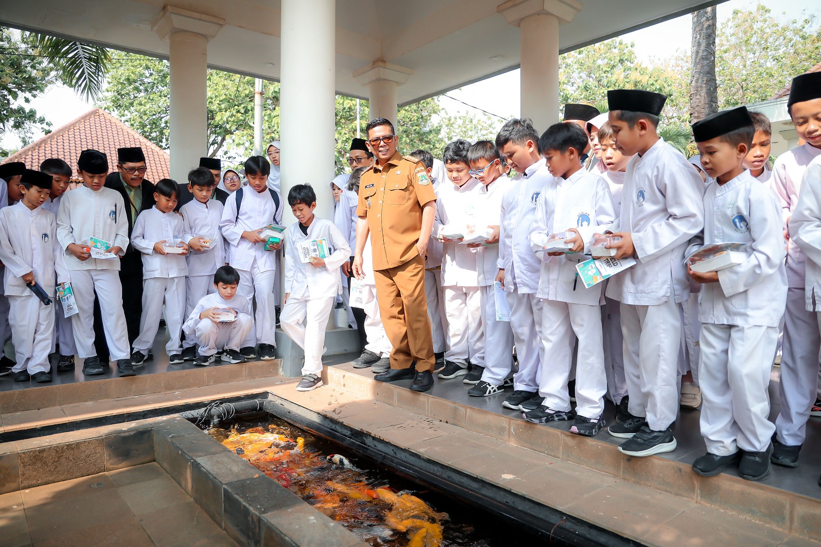 Perjalanan kemudian berlanjut ke ruang rapat, musala, hingga kolam ikan yang menjadi favorit siswa karena mereka bisa memberi pakan langsung. Terlihat senyum para siswa sambil terlihat sesekali bergurau antar mereka.