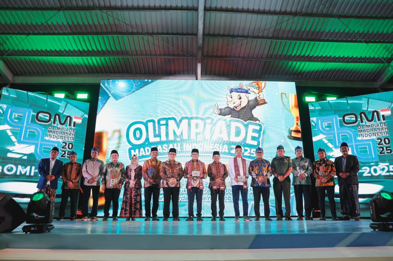 Gubernur Andra Soni menyampaikan ucapan selamat datang kepada seluruh peserta OMI 2025 dan menyatakan bahwa ajang ini adalah momentum penting dalam meningkatkan kualitas pendidikan berbasis agama Islam di Indonesia.