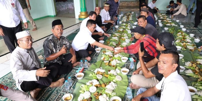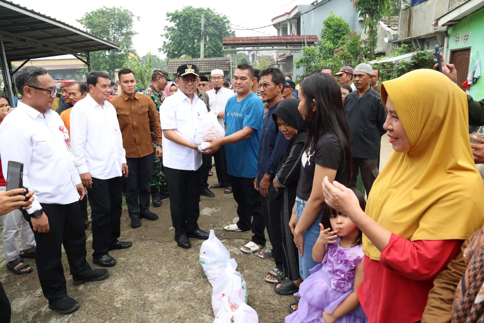 Setelah berdiskusi, Andra Soni kemudian membagikan 170 paket sembako kepada masyarakat terdampak yang disalurkan langsung secara simbolis kepada beberapa warga. Kemudian dilanjut dengan makan bersama warga dan diakhiri dengan salat Jumat berjamaah.