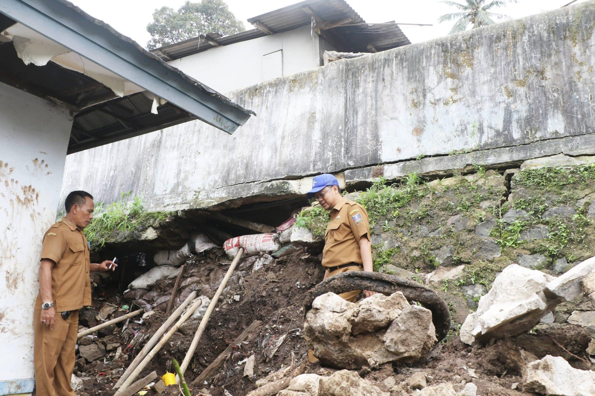 “Termasuk TPT di belakang kantor kita juga jebol yang luar biasa debit airnya sangat lumayan besar, padahal posisi kecamatan juga ada di atas. Akibatnya, air masuk semua ke ruangan camat dan arsip dengan ketinggian sekitar 50 centi meter,” kata Ugun Gurmilang pada Rabu, 28 Januari 2026.