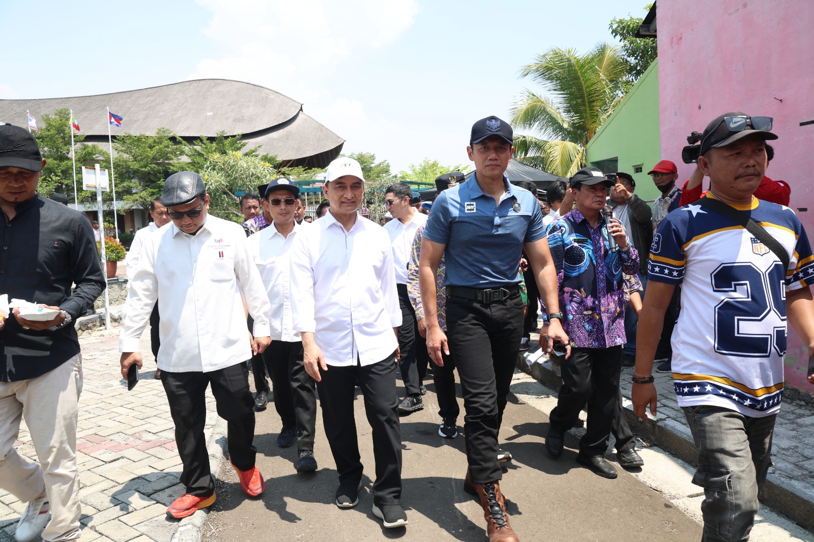 TANGERANG, PILARBANTEN.COM – Wakil Gubernur Banten Achmad Dimyati Natakusumah mendampingi Menteri Koordinator (Menko) Bidang Infrastruktur dan Pembangunan Kewilayahan Agus Harimurti Yudhoyono (AHY) saat meninjau kawasan nelayan di Kecamatan Mauk, Kabupaten Tangerang, Kamis (16/4/2026). Keduanya meninjau lokasi pengembangan dan penataan kawasan permukiman nelayan.