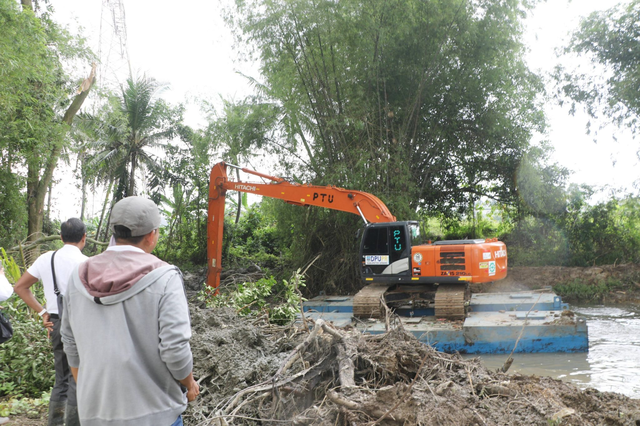 SERANG, PILARBANTEN.COM -Pemerintah Kabupaten (Pemkab) Serang melalui Dinas Pekerjaan Umum dan Penataan Ruang atau DPUPR menormalisasi saluran Sungai Cikambuy yang merupakan anak Sungai Ciujung menggunakan excavator. Normalisasi merupakan bentuk kesigapan pemerintah daerah dalam penanganan banjir.
