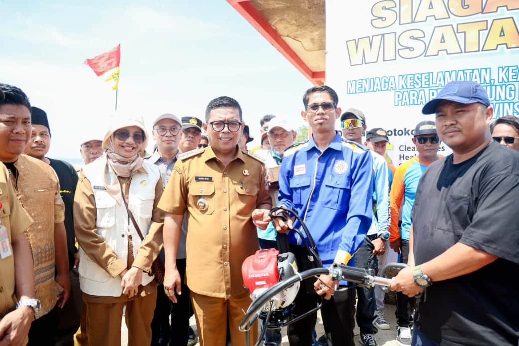 Pada kunjungan ini, Gubernur Andra Soni turut menyerahkan bantuan operasional kepada Badan Penyelamat Wisata Tirta (Balawista) Kabupaten Serang dan Kabupaten Pandeglang sebagai bentuk dukungan konkret terhadap pengamanan wisata pantai.