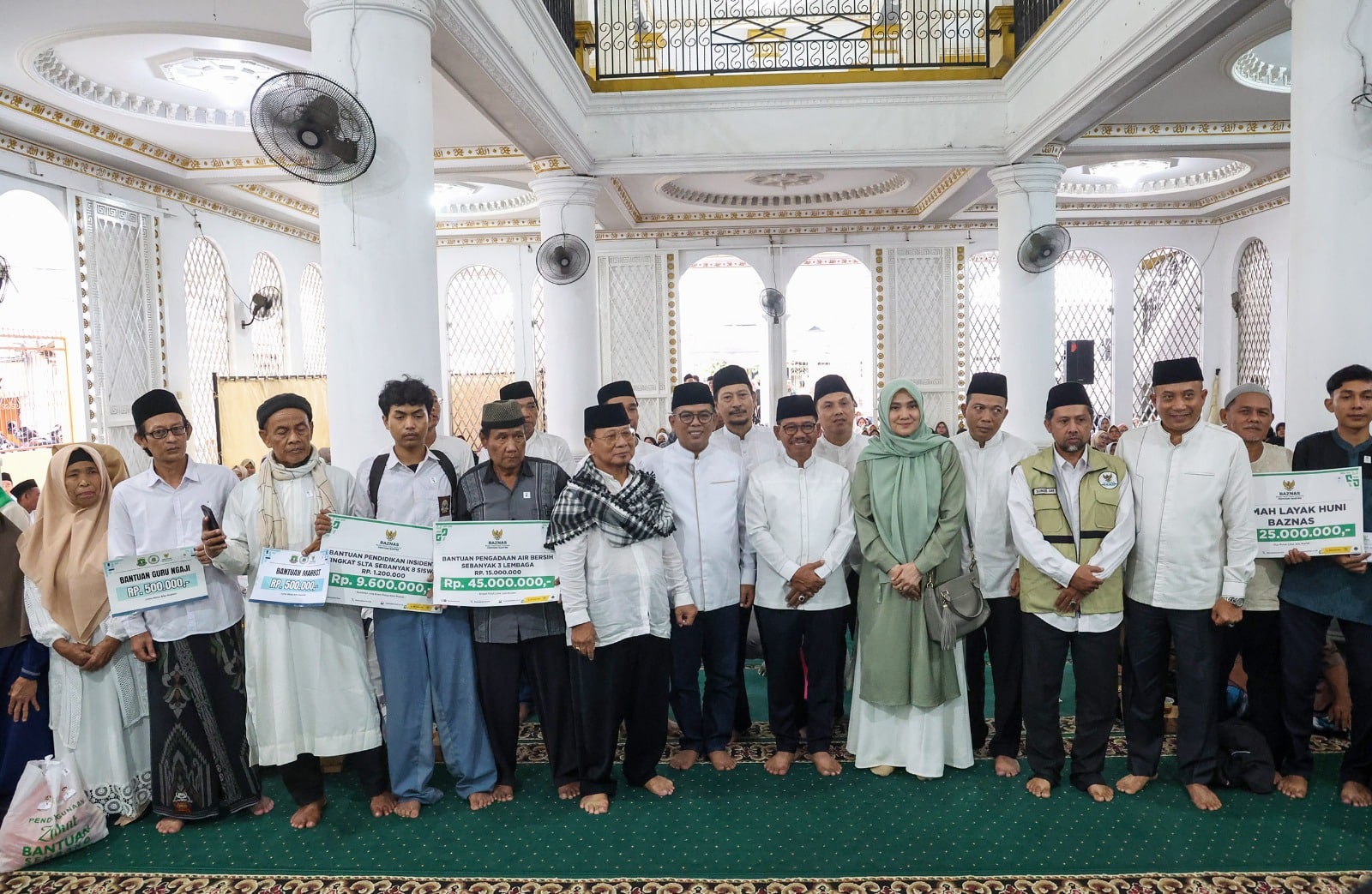 Selanjutnya Andra Soni juga menyerahkan bantuan pengadaan air bersih, bantuan rumah layak huni BAZNAS, bantuan sarana prasarana tempat peribadatan, bantuan sarana prasarana lembaga pendidikan keagamaan dan bantuan kesehatan.(js)
