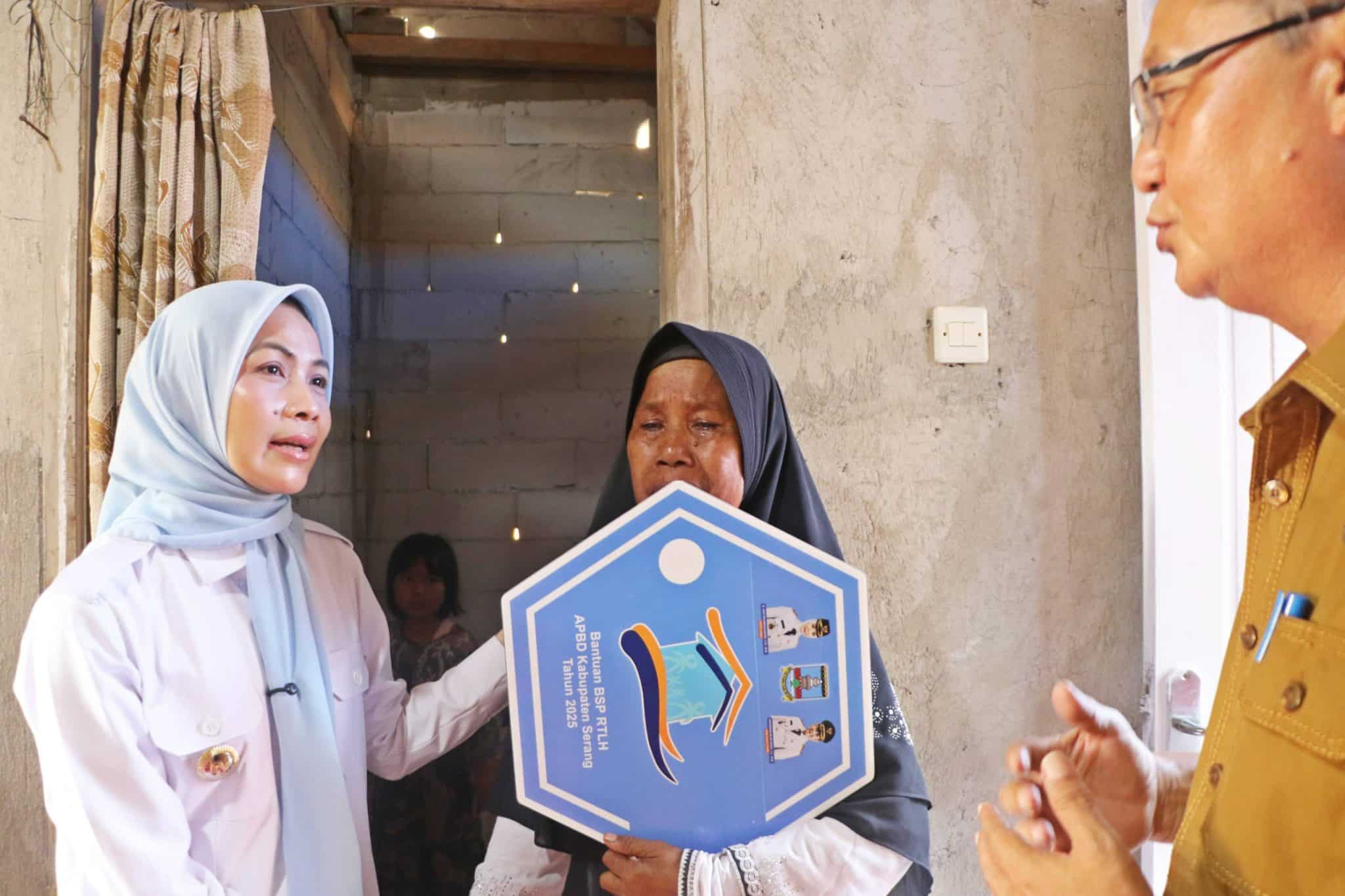 Rasa haru mereka ditumpahkan saat menerima langsung secara simbolis Bantuan Rumah Tidak Layak Huni (RTLH) menjadi Rumah Layak Huni (RLH) oleh Bupati Serang Ratu Rachmatuzakiyah, didampingi Kepala DPRKP, Okeu Oktaviana dan Camat Tanara Farid Anwar Ibrahim.