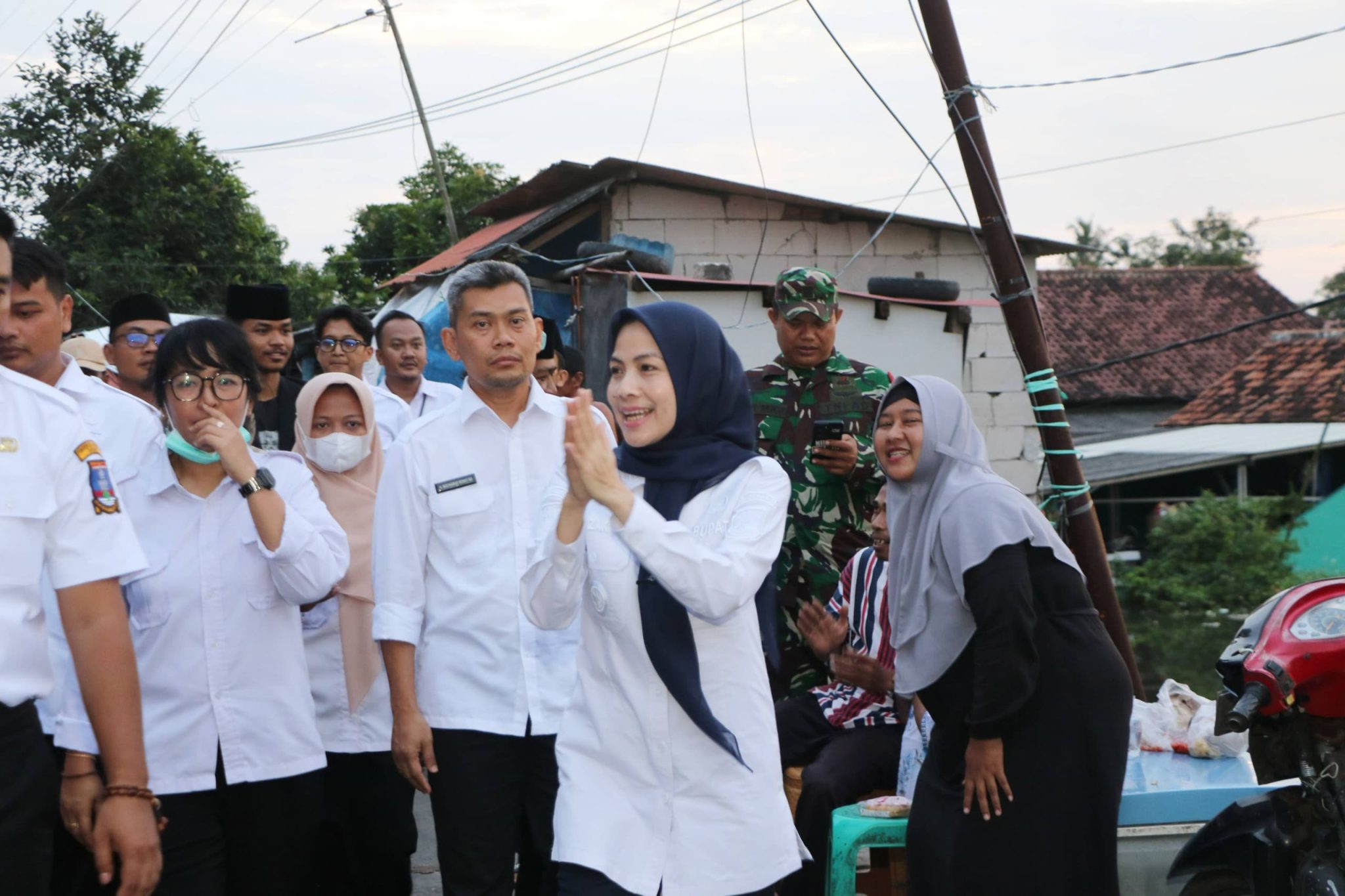 Ratu Zakiyah tiba sekitar pukul 17.30 WIB mengenakan baju kemeja putih dipadu celana biru didampingi Asisten Daerah (Asda) II Febriyanto, Kepala Dinas Pekerjaan Umum dan Penataan Ruang (DPUPR) Mochammad Ronny Natadipraja, dan Kepala Dinas Koperasi UMKM Perindustrian dan Perdagangan (Diskoumperindag) Adang Rahmat dan Camat Carenang Imron.